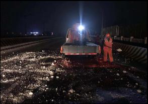 此次除雪防滑工作中,豐達(dá)人員不顧嚴(yán)寒、頂風(fēng)冒雪,全力奮戰(zhàn)在除雪一線,對重點公路、橋梁、匝道和上下坡等路段撒布融雪劑和防滑石子等,及時清除路面積雪、積水和冰凍,確保了公司養(yǎng)護(hù)路段安全暢通。