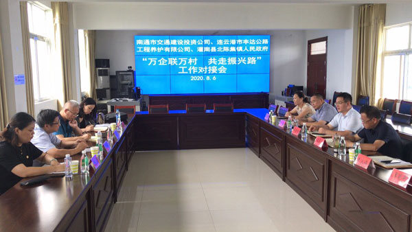 為積極服務(wù)鄉(xiāng)村振興戰(zhàn)略,8月6日,豐達(dá)養(yǎng)護(hù)公司與南通交通建設(shè)投資公司、灌南縣北陳集鎮(zhèn)人民政府在灌南縣北陳集鎮(zhèn)召開了“萬企聯(lián)萬村,共走振興路”工作對接會。南通交通建設(shè)投資公司副書記張燕濱、豐達(dá)養(yǎng)護(hù)公司總經(jīng)理王梁洲和北陳集鎮(zhèn)人民政府黨委書記周倍良等相關(guān)人員參加了會議。