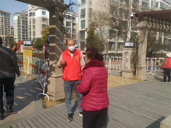 黨員董入龍在河畔花城小區(qū)配合社區(qū)做好維持核酸檢測隊伍秩序、查驗蘇康碼等志愿服務活動