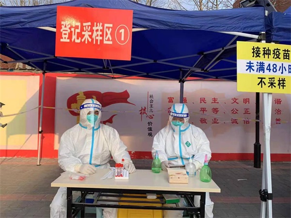 公司黨員張瑩在隴園新村和建寧小學廣場進行核酸檢測志愿服務