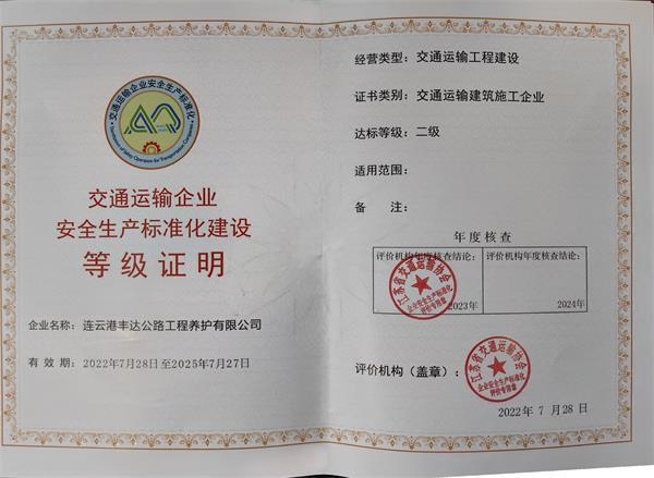 7月5日,豐達(dá)公司順利完成交通運(yùn)輸二級安全生產(chǎn)標(biāo)準(zhǔn)化企業(yè)年度復(fù)審工作。