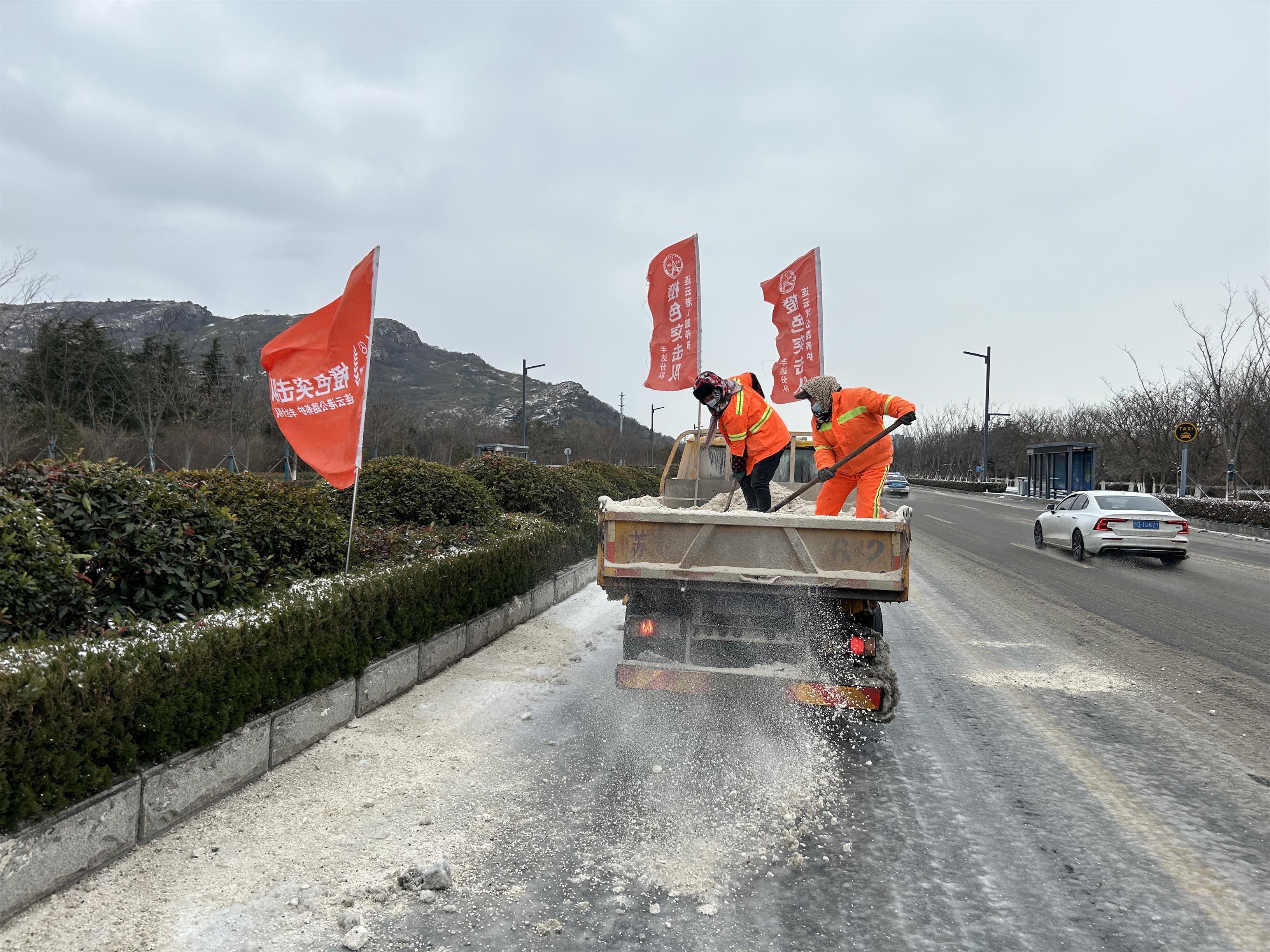 2024年1月31日傍晚,我市開(kāi)始降雨降雪,根據(jù)市掃雪除冰指揮部辦公室和市公路事業(yè)發(fā)展中心的部署,豐達(dá)公司緊急啟動(dòng)除雪防滑應(yīng)急預(yù)案,及時(shí)拋灑融雪劑和防滑料開(kāi)展除雪防滑作業(yè)。特別對(duì)公司所管養(yǎng)新港城大道、G228、G310、S242等多條主要國(guó)省干線和東疏港高速公路等彎道、匝道、橋梁、陡坡等易結(jié)冰、易發(fā)生事故路段的積雪進(jìn)行重點(diǎn)清除。同時(shí),綜合客運(yùn)樞紐對(duì)廣場(chǎng)的積雪進(jìn)行了及時(shí)清理,確保進(jìn)出站旅客的安全。