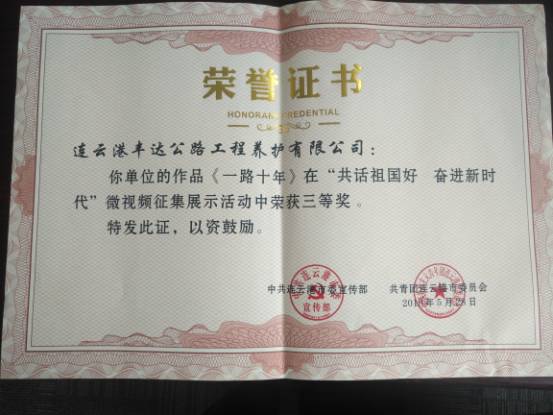 豐達(dá)公司拍攝的微視頻《一路十年》在市委宣傳部、團(tuán)市委共同主辦的“共話祖國好 奮進(jìn)新時代”微視頻征集活動中榮獲三等獎。