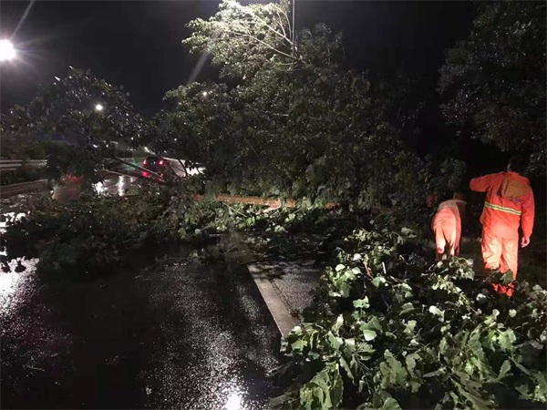 豐達公司市區(qū)養(yǎng)護分公司主要負責我市G310、G204、G311、G228、S242約200公里的國省干道管養(yǎng)工作。目前我市已進入汛期,7月14日下午4時,一場狂風暴雨突襲港城,公司“12345”應(yīng)急搶險人員立即開展巡查排險工作,311、204國道連續(xù)有樹木被大風刮到在路邊,影響車輛、行人通行,搶險人員頂著狂風暴雨,立即進行排險工作,通過近7個小時的連續(xù)奮戰(zhàn),對20多棵倒伏樹木進行清理,將斷樹斷枝運離現(xiàn)場,將倒伏的樹木扶正,在最短時間恢復道路暢通,實實在在為群眾的安全出行辦實事。