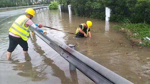2023年7月11日上午,連云港地區(qū)突降暴雨,為保障行車(chē)安全,項(xiàng)目部積極開(kāi)展巡查工作,增強(qiáng)排澇力度,確保道路通暢。