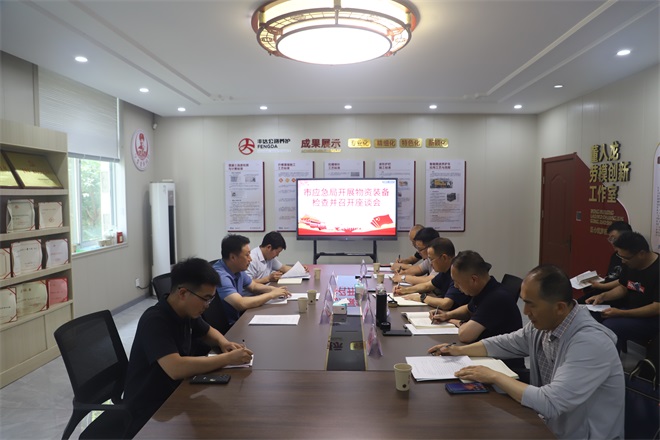 錢成勇一行對(duì)應(yīng)急處置中心的應(yīng)急救災(zāi)物資裝備管理情況進(jìn)行檢查,根據(jù)物資庫(kù)租用合同,主要查看是否落實(shí)專人看管物資庫(kù)、庫(kù)內(nèi)物資日常管理情況、看管人員是否熟悉物資庫(kù)信息化系統(tǒng)操作及介紹等情況。隨后檢查組召開物資管理座談會(huì),聽取豐達(dá)公司關(guān)于物資庫(kù)交接后的運(yùn)行情況、主要問(wèn)題與困難、物資庫(kù)使用效能提升措施,以及下一步應(yīng)急演練計(jì)劃的專題匯報(bào)。
